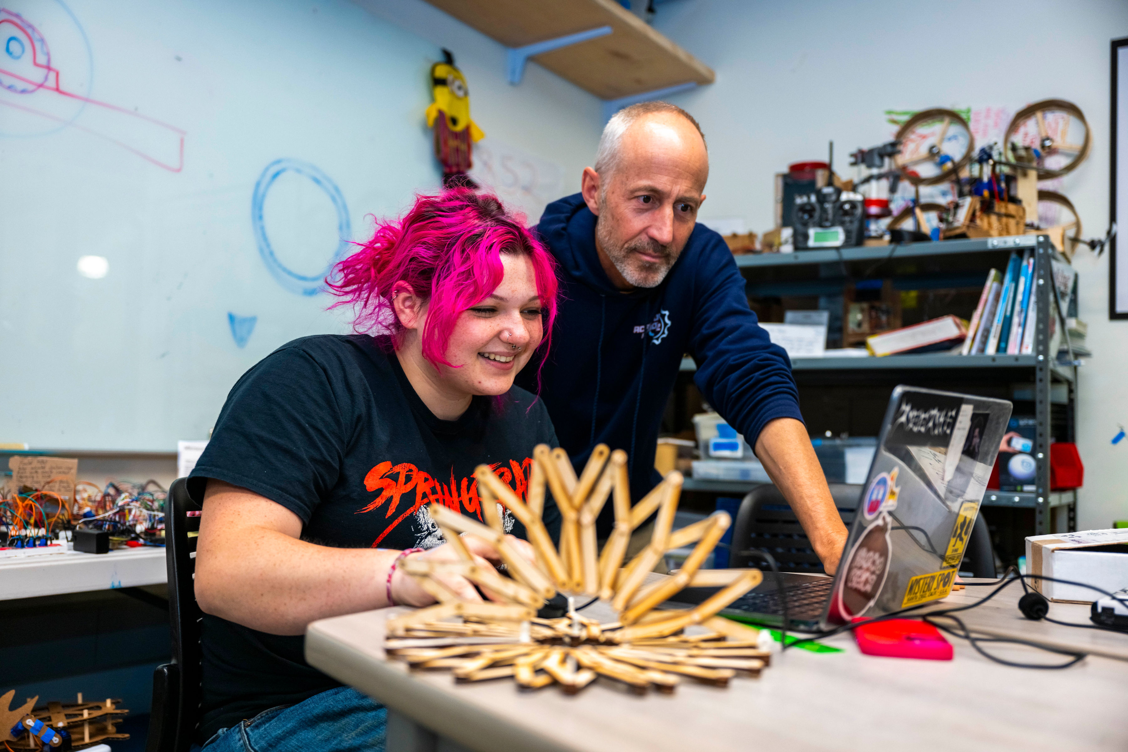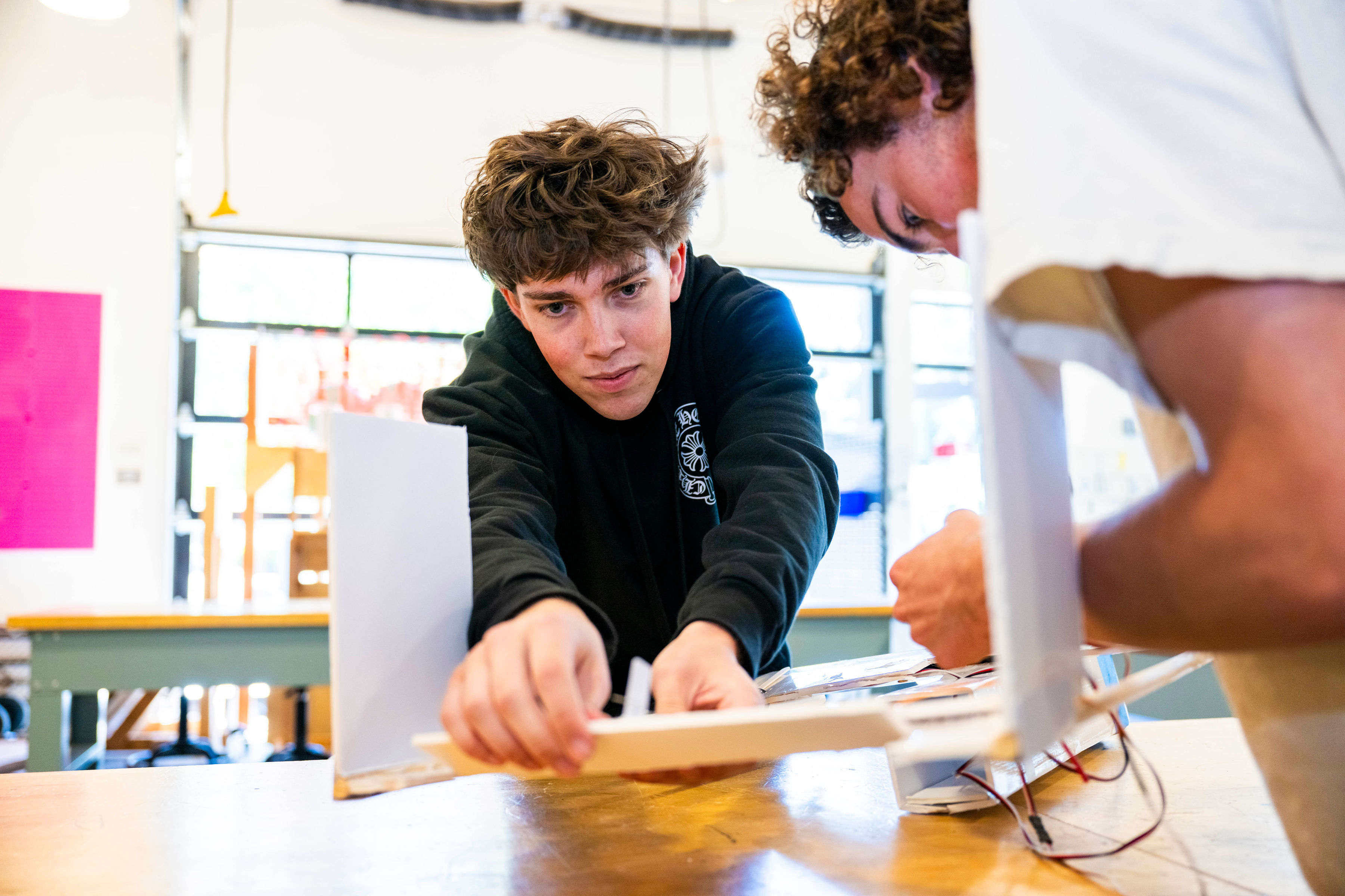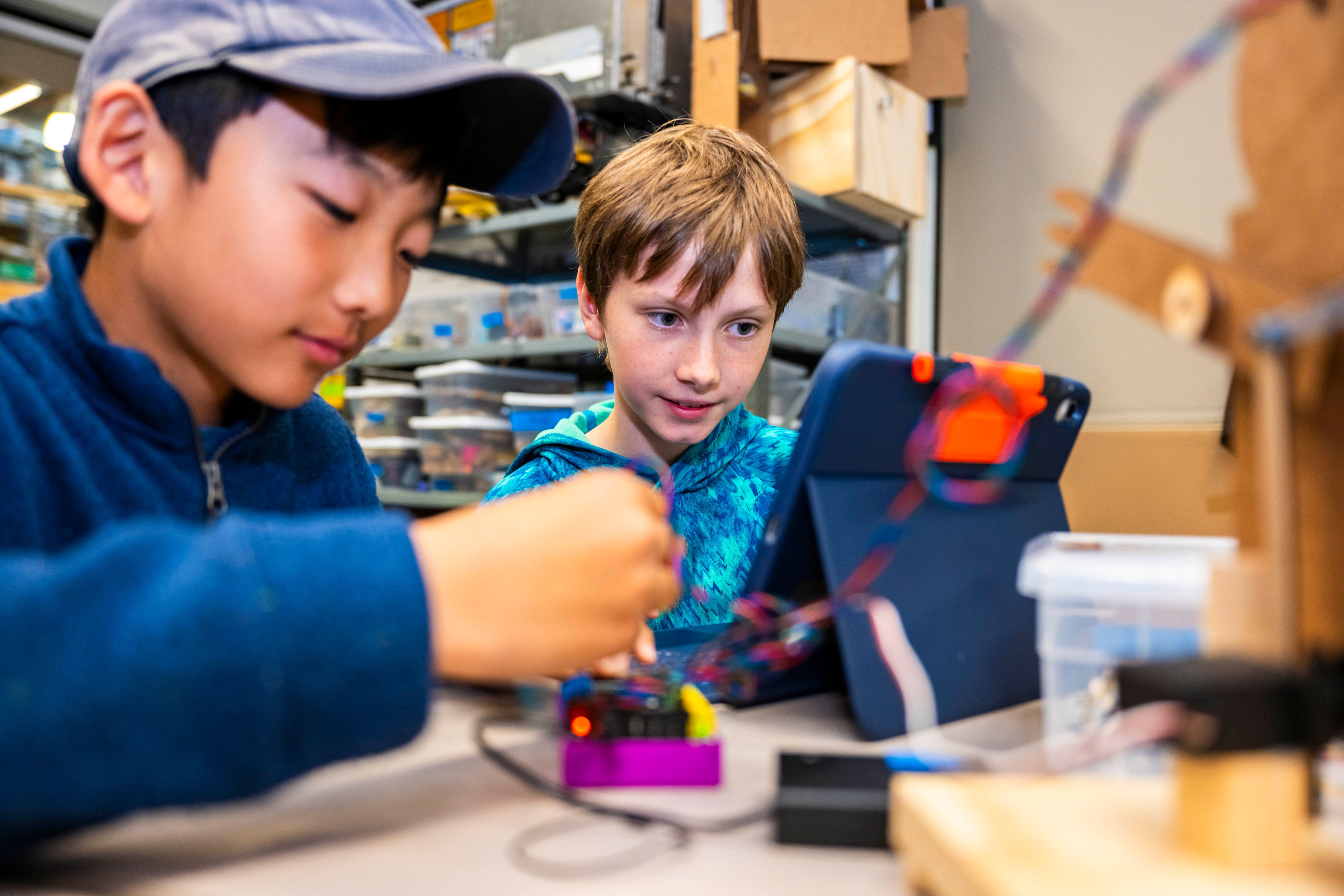 The CIS is a hub of activity all day, every day. Its open floor plan invites collaboration, with spaces dedicated to woodworking, metalworking, textiles, and rapid prototyping. Students can explore everything from 3D printing and laser cutting to vinyl cutting and digital embroidery. Highlights include a "pit" for our robotics team, an experimental planetary impact lab, and classrooms that flow seamlessly into the fabrication area.